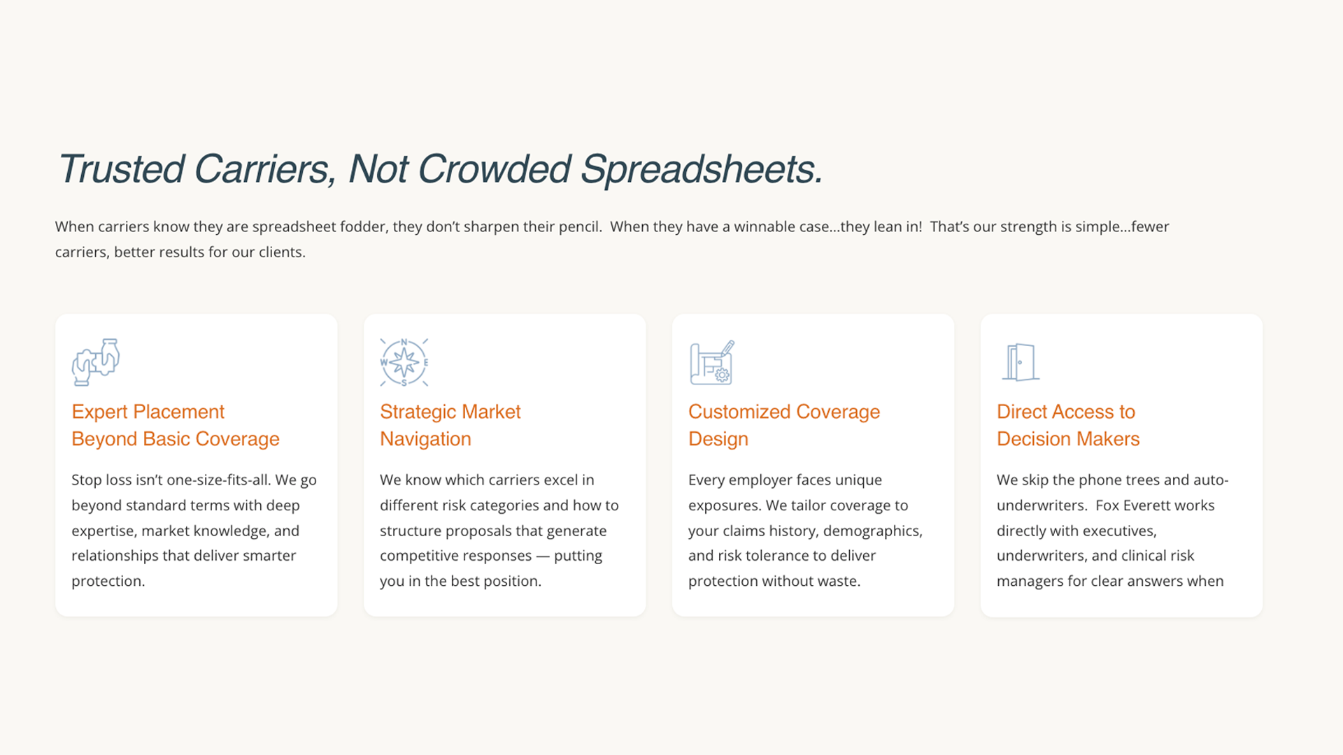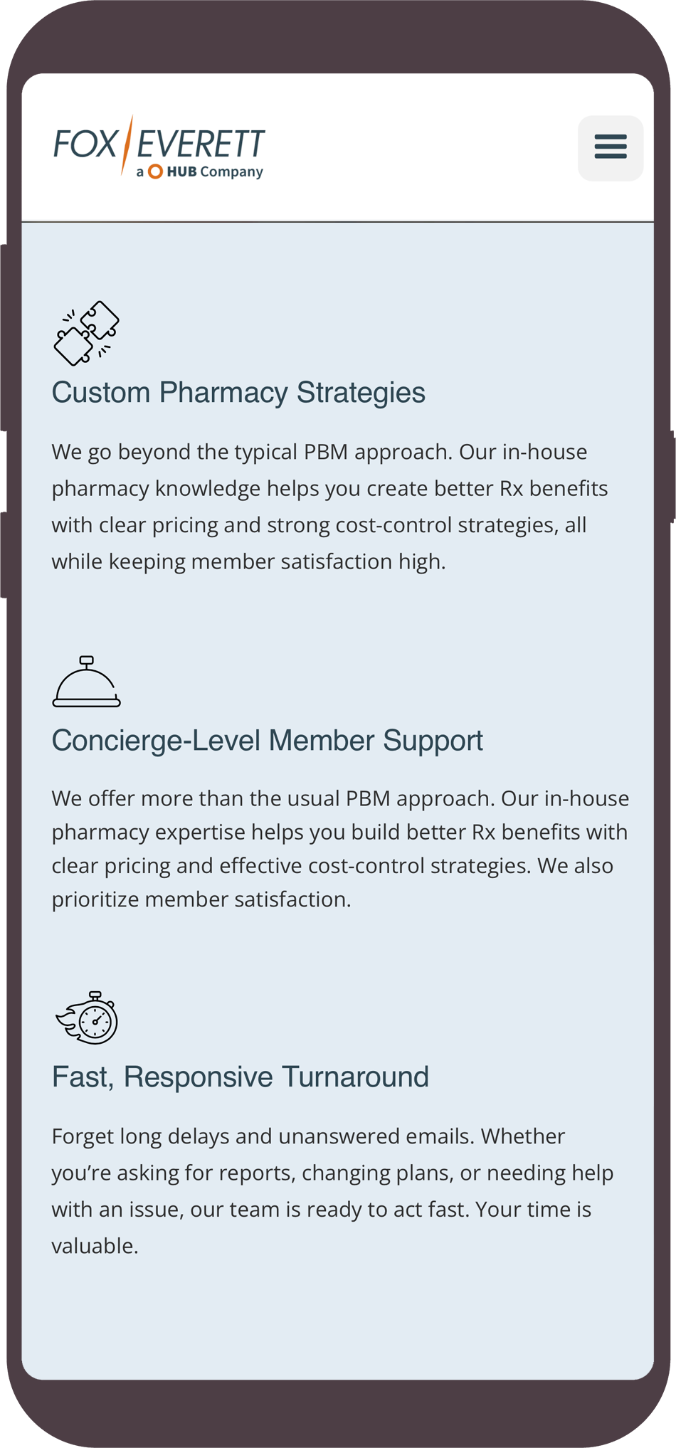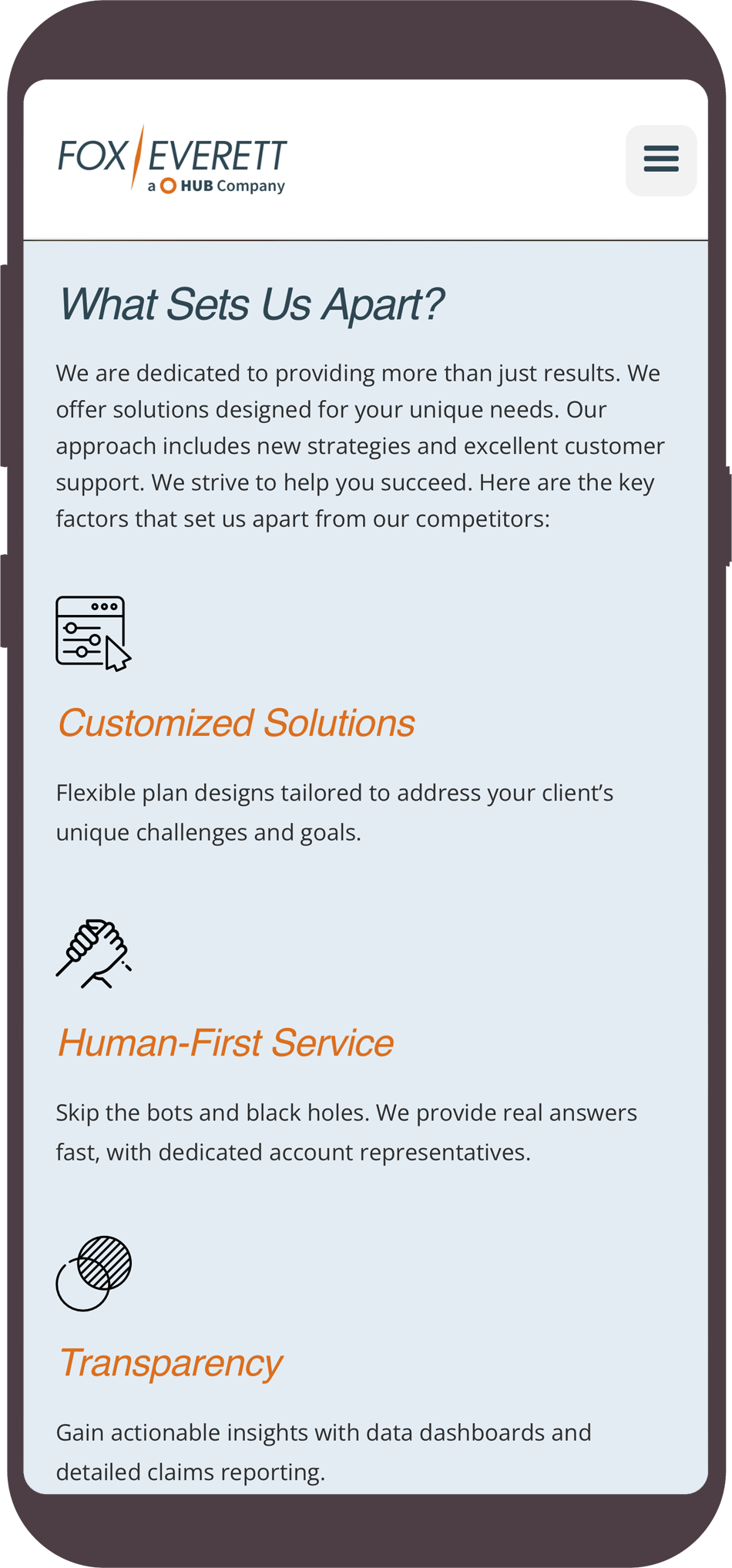I created a complete brand transformation for Fox Everett, a boutique insurance and benefits company. Starting with a fresh identity and carrying it through the full design and development of their new website, every detail was built with intention. The result is a digital presence that feels seamless, elevates the brand, and delivers measurable results. By combining data driven strategy, seamless flow, and brand elevating visuals, the final product does more than look polished, it delivers results.